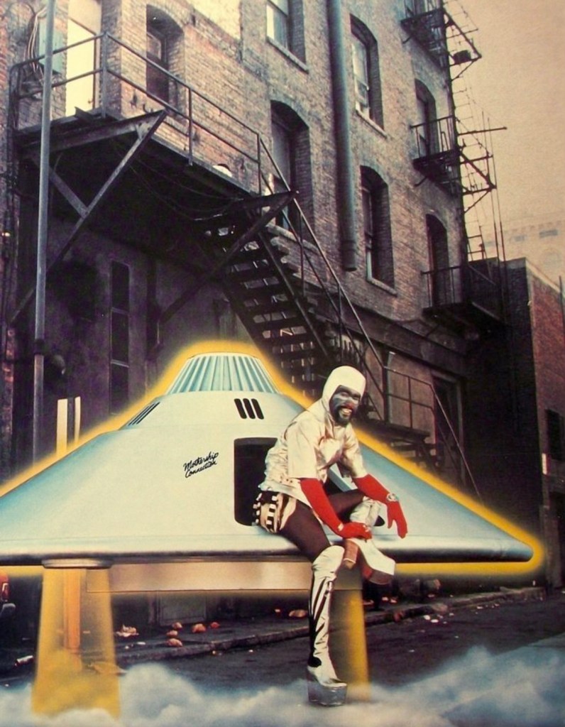 Afrofuturism and Afrosurrealism definitely overlap. They both come out of Black cultural expression and deal with ideas of liberation, identity, and reimagining the world. Afrofuturism is all about looking ahead. Imagining Black futures, alternate histories, and worlds where Black people aren’t just surviving but thriving. It leans into sci-fi, speculative fiction, and high-tech imagery, whether that’s Sun Ra sailing through space in his cosmic jazz or Parliament-Funkadelic’s mothership funk It’s forward-looking, often cosmic, and it uses futuristic worlds as a way to rewrite history and shape the present.